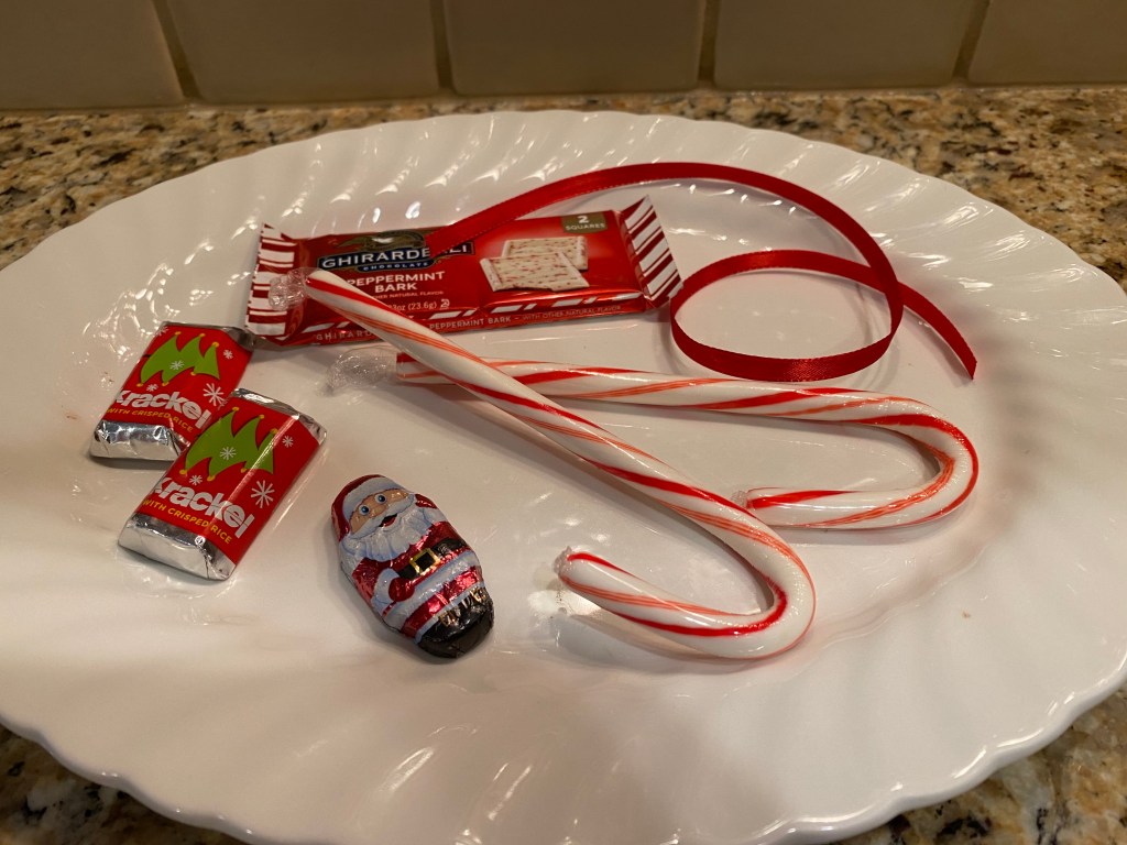 - Place the Santa on the Ghirardelli bar in front of the mini chocolates