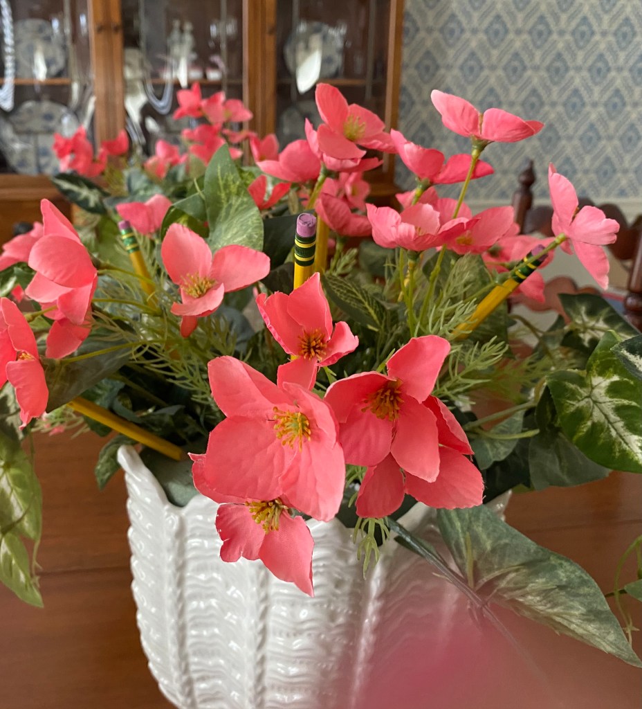 - Insert the pencils into the flower arrangement or in the soil of the plant