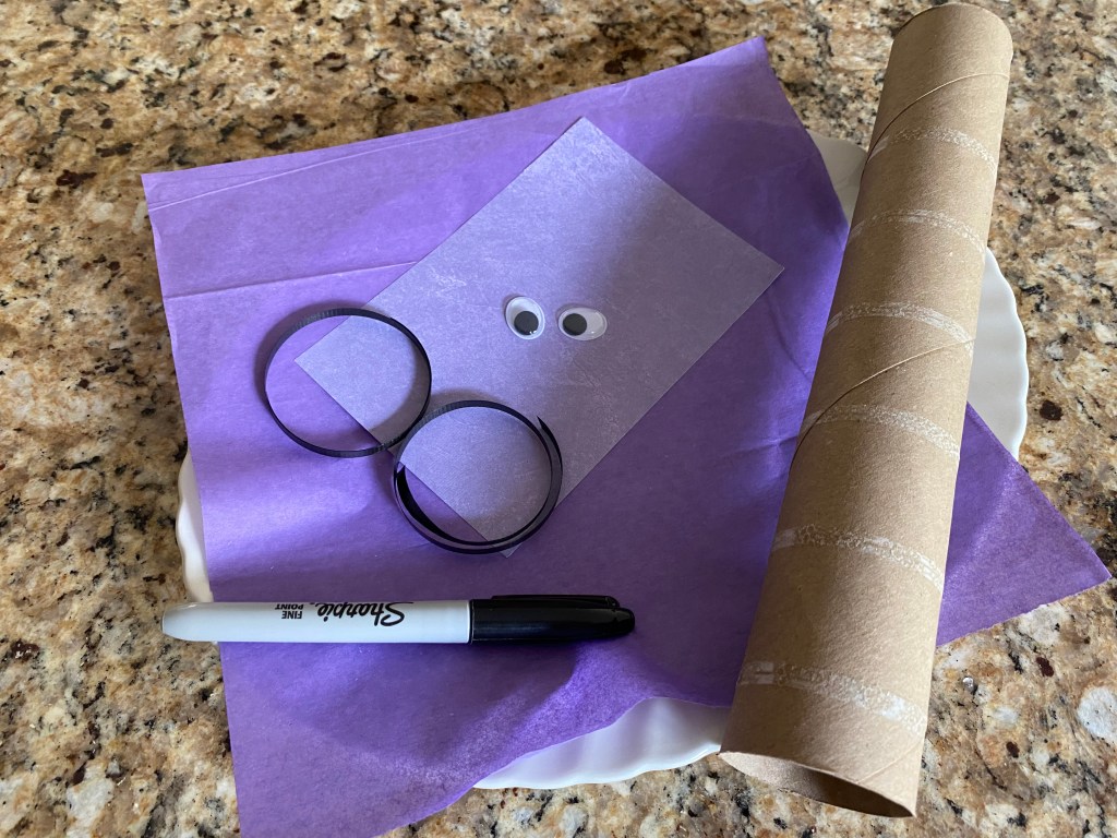 - Purple tissue paper cut in 10x 10 inch pieces