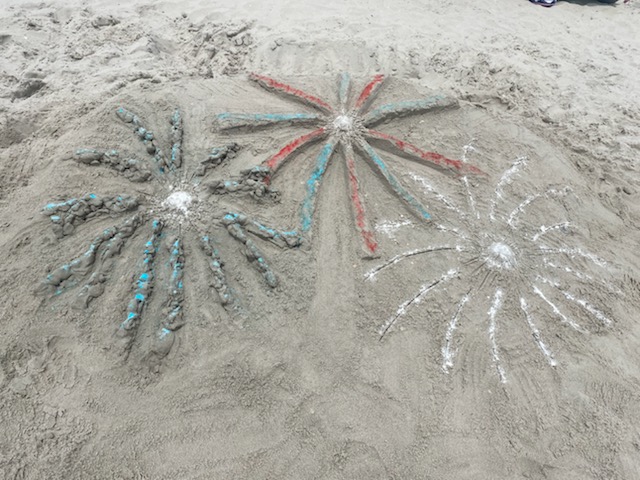 B-Crafty shares the beach decoration her family helped create on the 4th of July; “Sand Fireworks”. This is very easy to build and to color. Red white and blue fun!