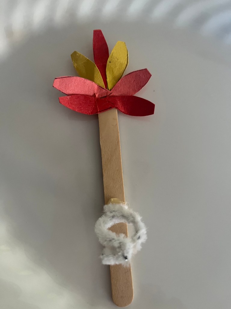 - With hot glue affix the pipe cleaner on the back in a ring to put your finger through