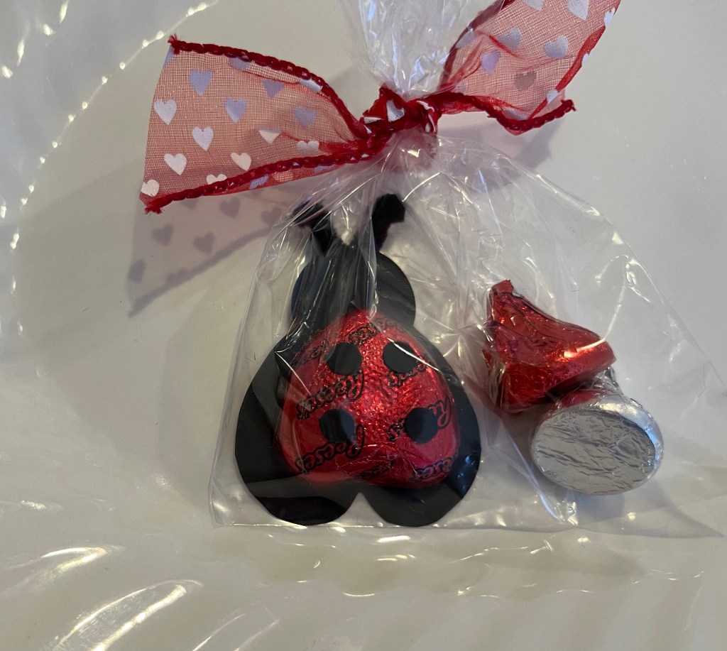 - Place the finished ladybug in a small cellophane bag and add two kisses to the bag