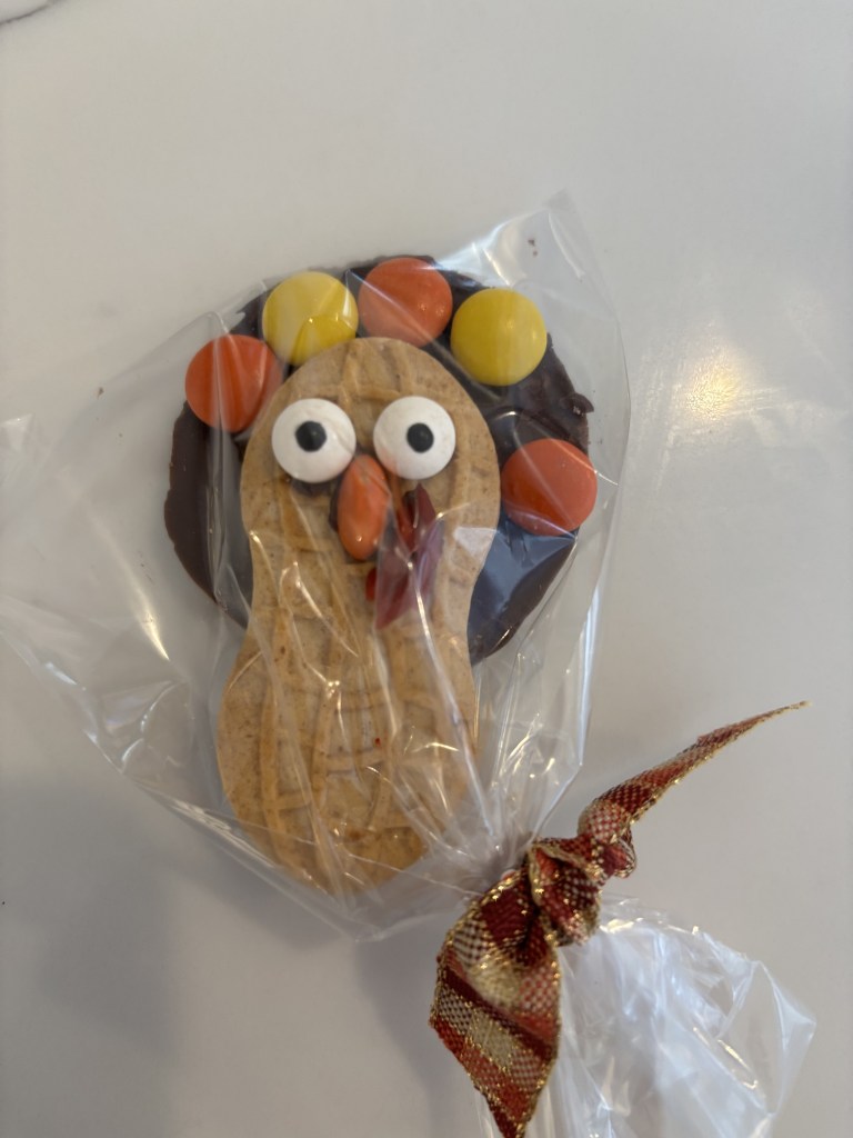 B-Crafty Tip: B-Crafty uses a pill cutter to cut the Reese’s pieces in half. Another tip for this craft is that B-Crafty suggests you attach a name tag to this treat and use it as your place cards on Thanksgiving dinner.
