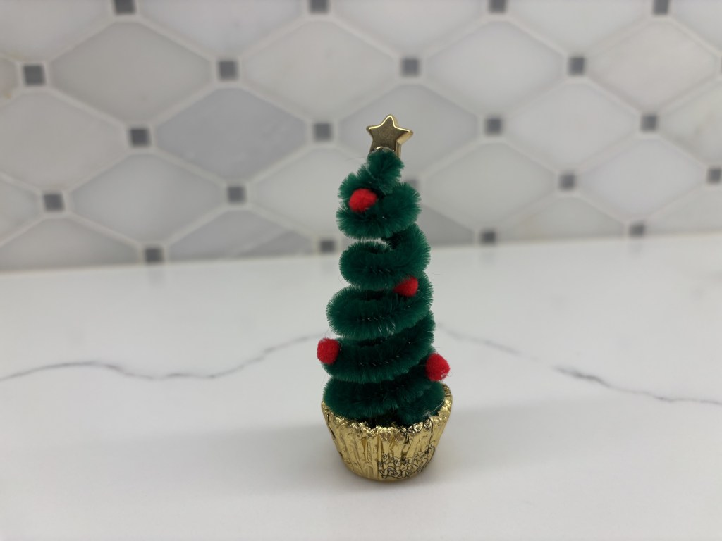 - With hot glue affix the star bead at the top of the pipe cleaner