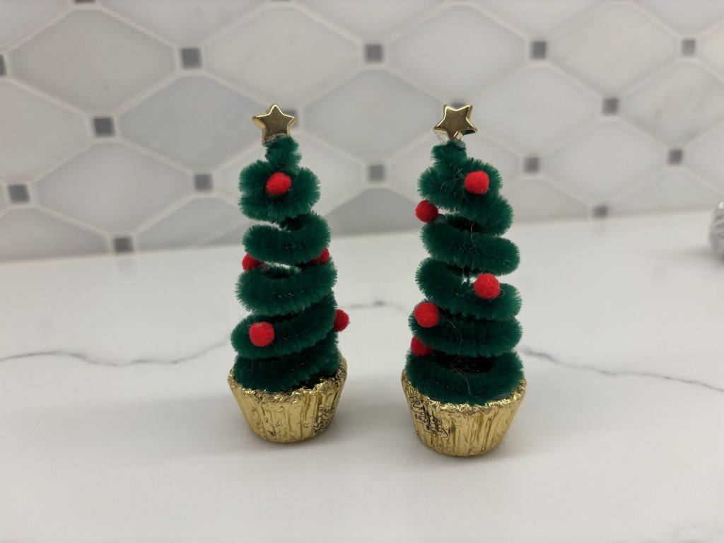 B-Crafty Tip: You may need to adjust the top of the pipe cleaner after you twist it to make is narrower or you may have to adjust the bottom to make it wider. All in the pursuit to make the pipe cleaner into a good tree shape.