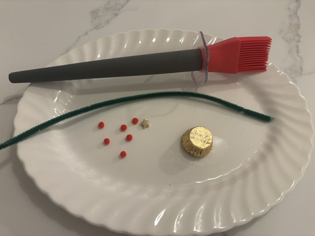 - Twist the piper cleaner around the handle of a kitchen utensil. (I used a pastry basting brush as the handle was graduated in size)